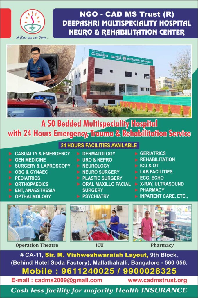 Deepashri Hospital was founded in the year 2010. The planning, designing and Man Power was done by Dr.Sreedhar, MD, MHA, MLE, FNR (UK),Dip CMH (NIMHANS)Consultant Neuro Physician, Hospital Administrator Specialist in Neuro Rehabilitation & Mental Health and Medico legal