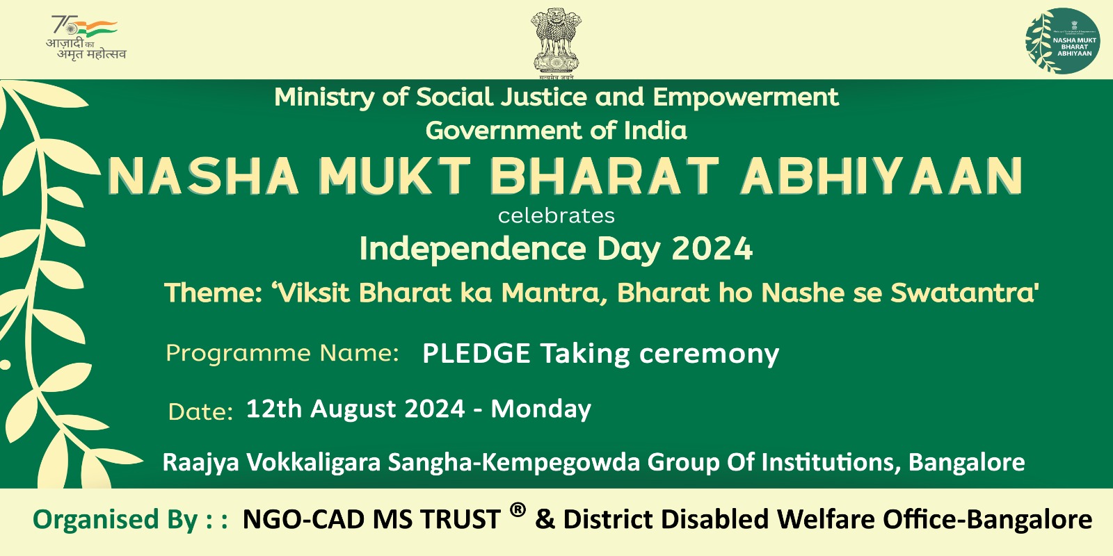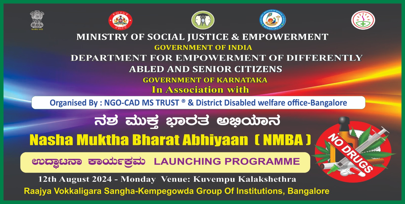 Nasha Mukt Bharat Abhiyaan was inaugurated on 31-07-2021 at 11.am at KAS OFFICERS ASSOCIATION #1/1,Infantry Road (Near Police Commissioners Officer) Bangaluru 560001 in the presence of Bangalore DC.