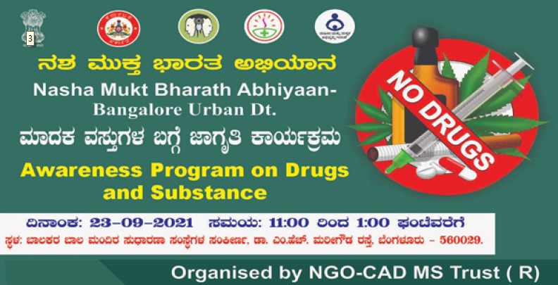 NASHA MUKT BHARAT CAMPAIGN BANGALORE URBAN DISTRICT drugs awareness programme was organized by NGO CADMS TRUST AND TEAM on 07/08/2021 at 12.00pm at ECHO –Sumanahalli village society, Total 50 members were gather in this awareness programme.