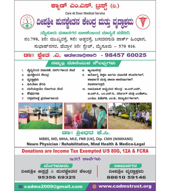 Mysore - Deepashri Rehabilitation Center with Old age Home - For Bedridden Palliative, Mentally
